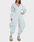 Cozy Deep V Sweatshirt Jumpsuit
