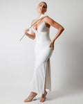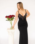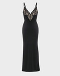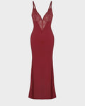 Deep-V Lace High-Slit Maxi Dress with Built-In Shapewear