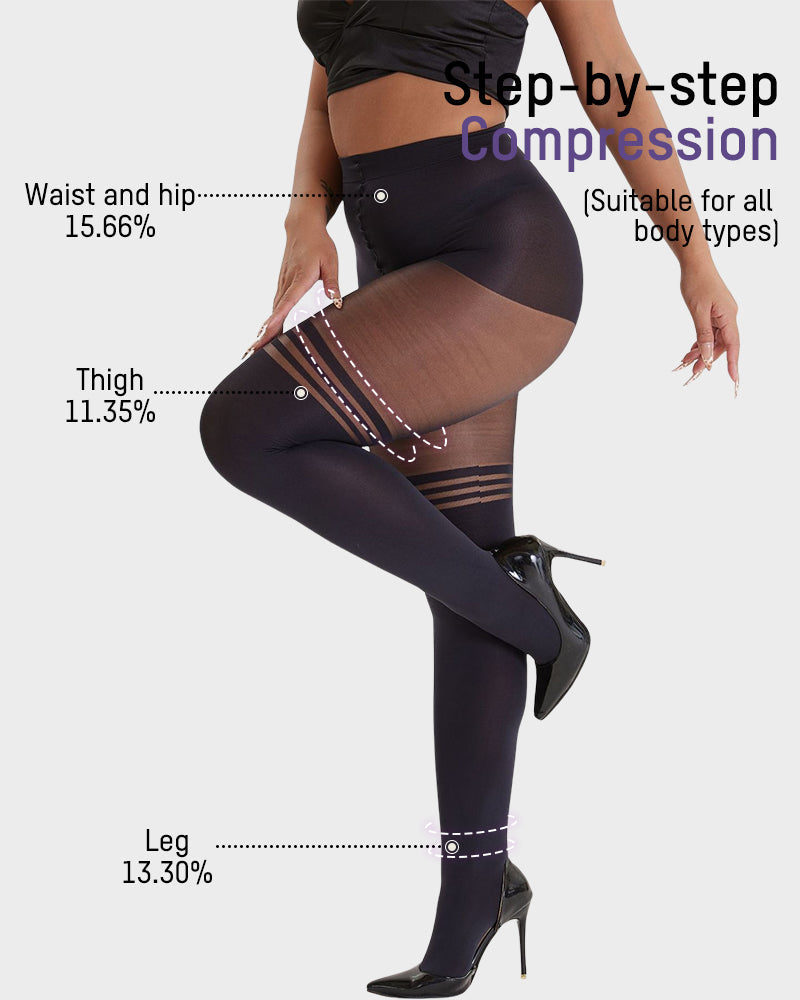 Get the thigh-high look without the slip, squeeze, or constant adjusting. These chic striped tights sculpt your legs with a sleek, high-waist fit, while the faux-over-knee design makes your legs look longer, slimmer, and effortlessly stylish.