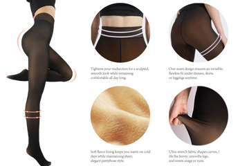 Sheer on the outside,fleece-lined inside, these tights look like sheer stockings butkeep you incredibly warm. The soft inner layer traps heat while staying breathable —stylish warmthmade effortless.