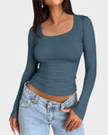 Wrap yourself in effortless Y2K charm — this long-sleeve crop top blends vintage vibes with modern comfort to flatter and frame your silhouette. The wide square neckline and slim, buttery-soft fabric create a sleek, wearable look that layers like a dream or stands alone for a clean, minimalist outfit. Perfect for spring through autumn, it’s the little staple that makes every outfit feel pulled together.