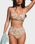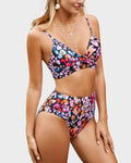 Twisted Front Color-Block High Waist Bikini Set