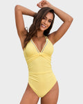 Introducing the V-Neck Hollow Trim Knotted One-Piece Swimsuit, a chic and contemporary choice for your beach or poolside escapades. This swimsuit combines stylish design with flattering features, ensuring you look and feel fabulous all summer long.